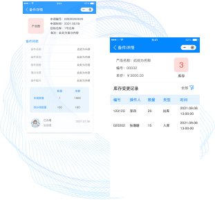 服务人员可以在移动端查询库 存、申领备件,获得备件后在 个人备件库关联工单使用
