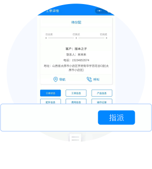 服务台接单后,可在移动端进行派 工,服务人员当前工单量直观显示 可作为派工参考,方便高效